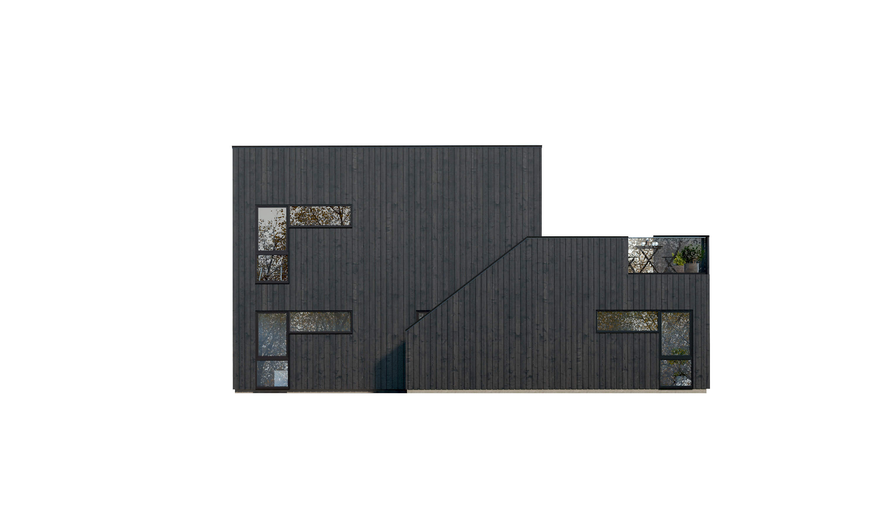 Slottsvik har et unikt design, med en kombinasjon av stående kledning og fasadeplater, og en karakteristisk bro over carporten. Her får du store vindusflater og gjennomtenkte detaljer, som gir boligen et eksklusivt og moderne preg.