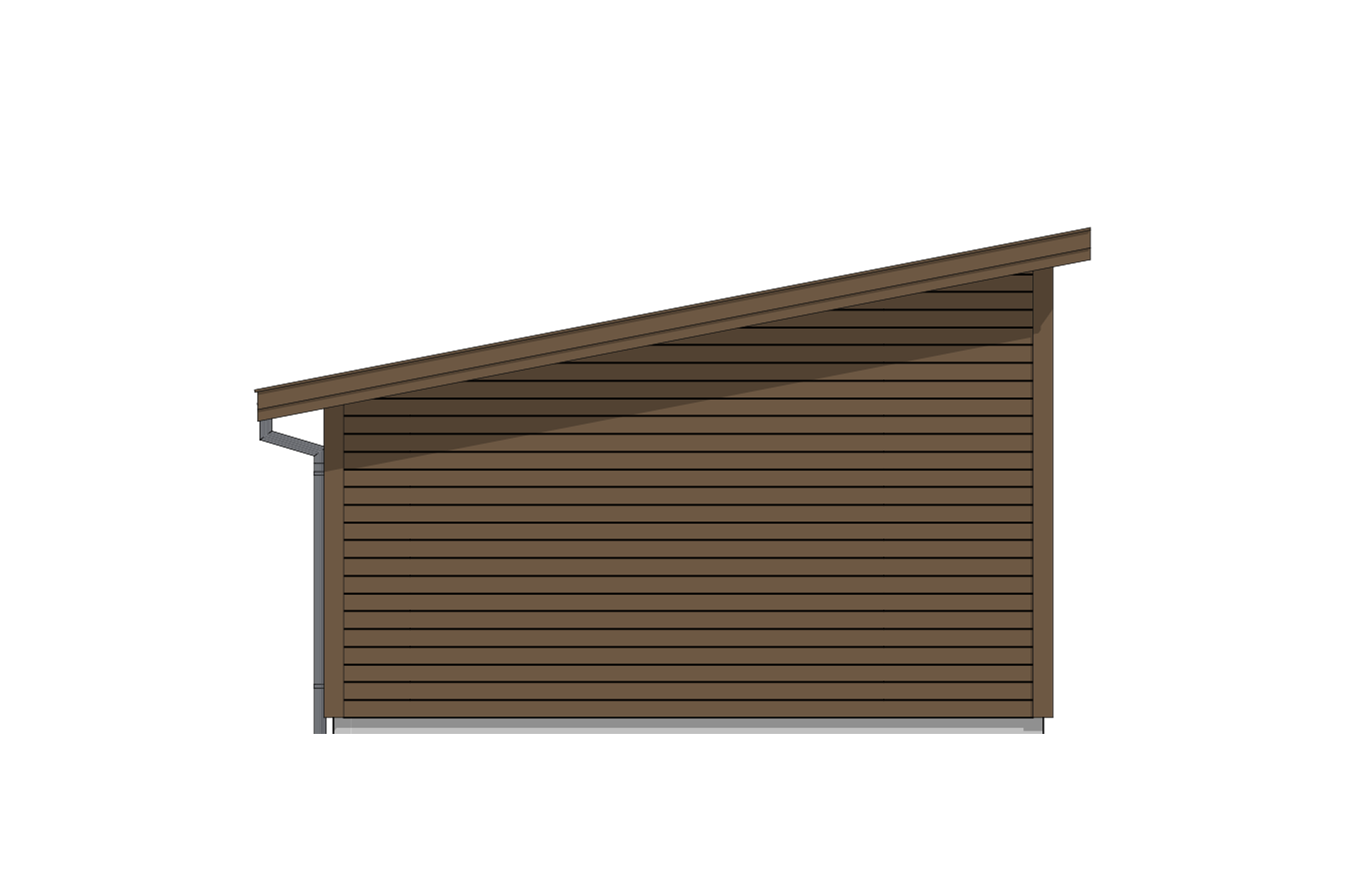 Bygget har en moderne fasade og står svært godt sammen med moderne boliger. Garasjen har moderne, smale vinduer som opprettholder et tidsriktig ytre samtidig som de slipper lys inn i garasjerommet. En dør er plassert på nordveggen, for at du enkelt kan gå inn og ut av garasjen uten å måtte åpne portene.